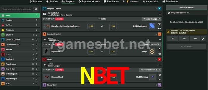 O Nbet oferece uma grande seleção de opções de apostas em e-sports com probabilidades competitivas